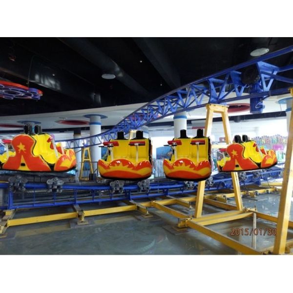 mini roller coaster for sale is shaped according to the round shape. The coaster, drive by two DC motors, run along the two spiral tracks, spiraling up one moment, faling the next, it is entertaining, interesting, and stimulating as well, both suitable to the old nd the young. Theelegant shape of the Chinese dragon and the decoration with ethnic characteristics are attractive to the tourists.